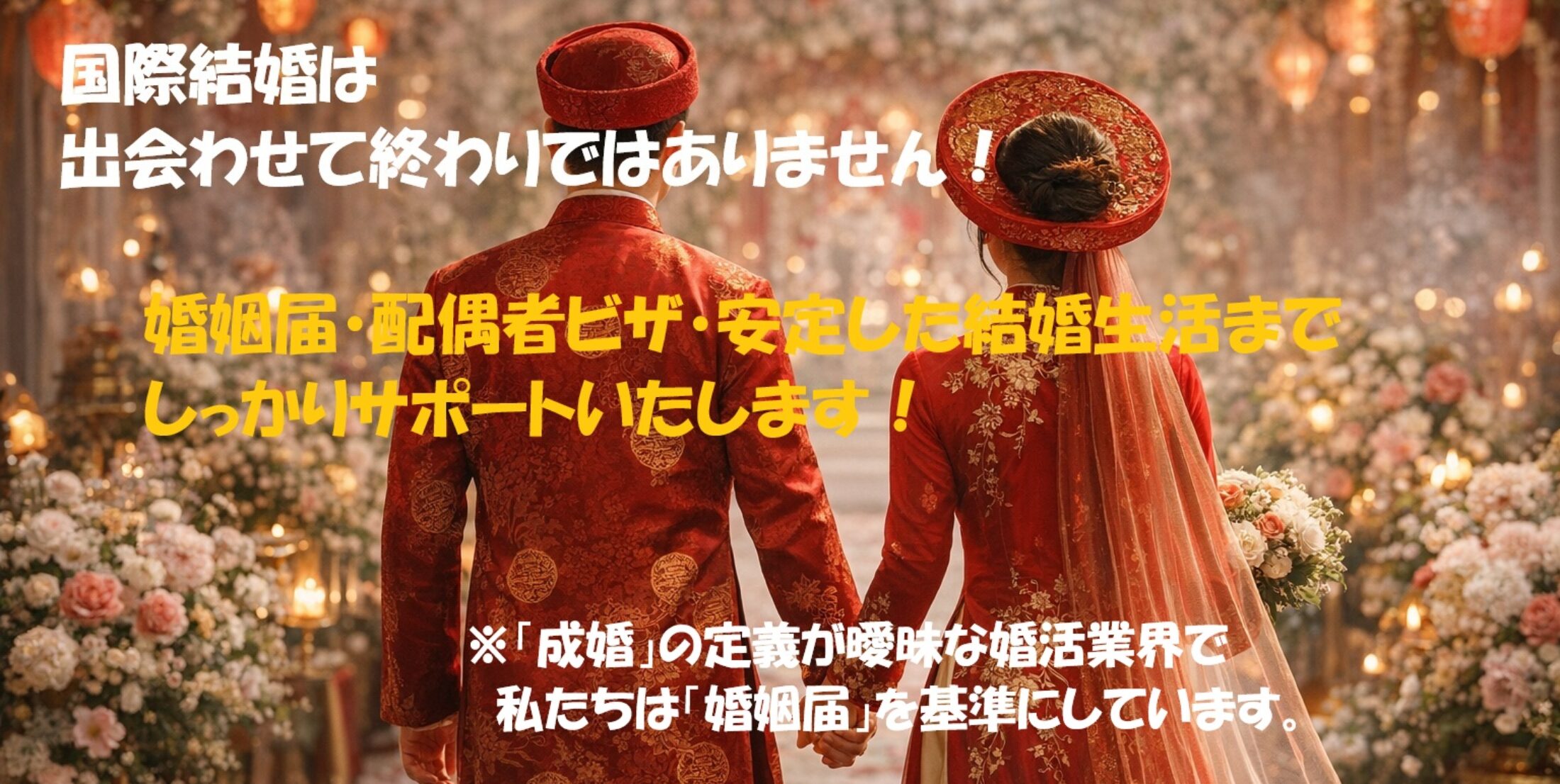難しい国際結婚の婚姻届・配偶者ビザ取得・安定した結婚生活定着まで、最後までカウンセラー(仲人)がサポートいたします。